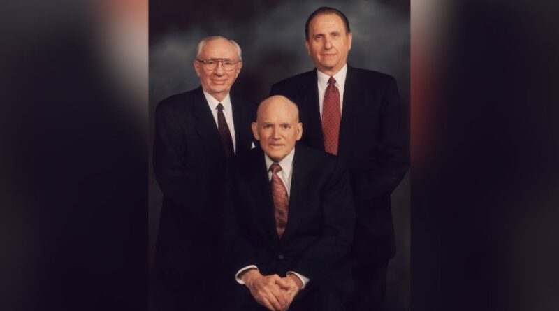 O presidente Howard W. Hunter chamou Gordon B. Hinckley e Thomas S. Monson para servirem como seus conselheiros na Primeira Presidência em 1994. Imagem: A Igreja de Jesus Cristo dos Santos dos Últimos Dias.